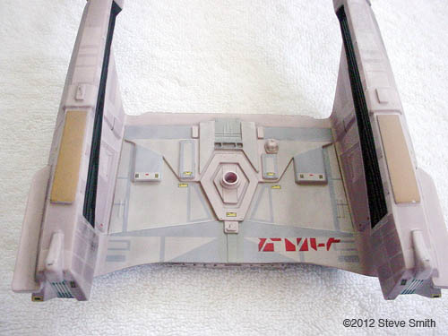 Nice to see Round 2 bringing back some classic kits! And with nice improvements too! The addition of a magnet to hold the shuttle in place on top of the warp sled, great idea! The new decal sheets with hull plating are nice and add some really great detailing to this kit without the need for all the masking and painting. The color for the shuttle was off on the instruction sheet. They recommended purple with a little light gray mixed in. Didn't seem to match the plastic color very well, so I mixed up a pink color, added some medium blue one drop at a time until the plastic color matched. The model was then airbrushed with this mixture, then a gloss coat for the decals, flat coated, then weathered with pastels, then flat coated again. This new kit release is much better than the original release. Image: Sled Underside Image: Connection Detail Image: Sled Bottom Front |