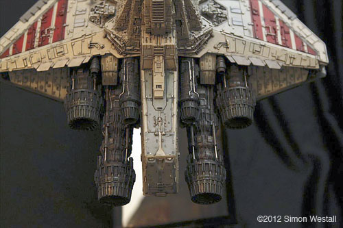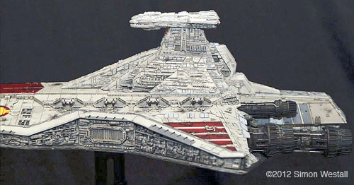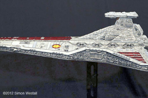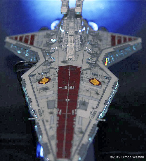 This is my version of the Revell Venator. It took over a year to build. There is approx. 20 feet or more of Fibre Optic thread installed and there are about 46 LED’s to light it all up (including the engines). It was my first super detailing and lighting attempt, so a lot of lessons have been learned. Image: Bridge Image: Engines Image: Front Image: Left Image: Bay Image: Bridge Image: Left Front Image: Left Image: Rear Left Image: Left Image: Front Left |
