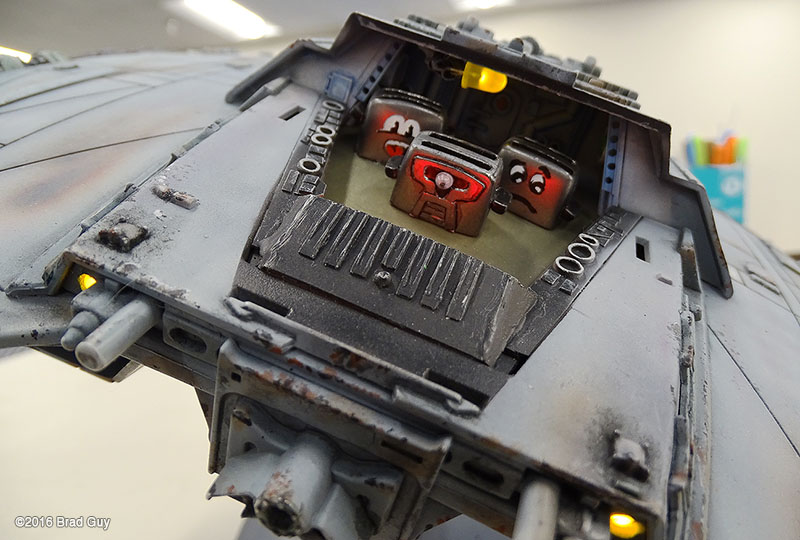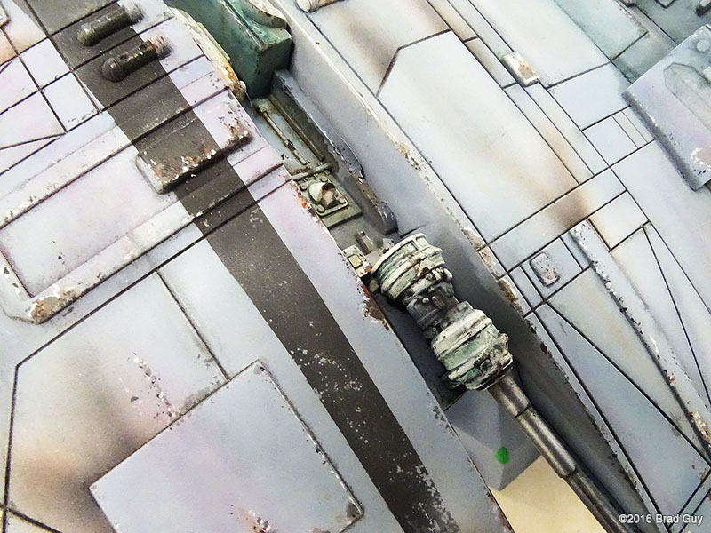 Not being satisfied with just building it I added lighting and detail. The cockpit features three custom scuplted figures representing the Cylon pilots. I finished it with various pre & post shading, airbrushed stains, blast marks, chipping and of course Alclad II paints. Oh and dot filtering and color modulation. And some other weathering stuff that I forget. This model is featured as the March 2016 wallpaper. Image: Front Right Image: Right High Image: Left High Image: Rear Left Image: Top Image: Toasters Image: Canopy Open Image: Engine Image: Engines Image: Front Underside Image: Left Wing Underside Image: Rear Deck Image: Gun Image: Cockpit Image: Top |